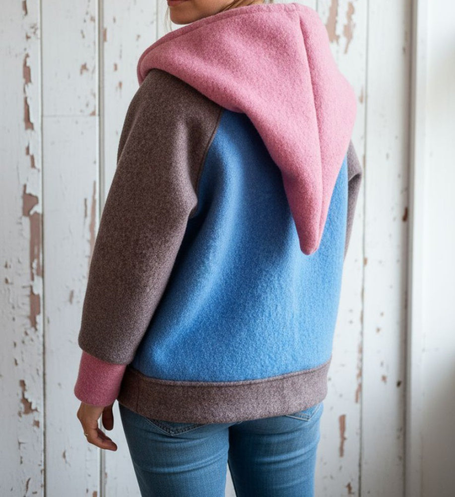 Schöne Walkjacke aus 100% Wolle in blau, braun & Grapefruit