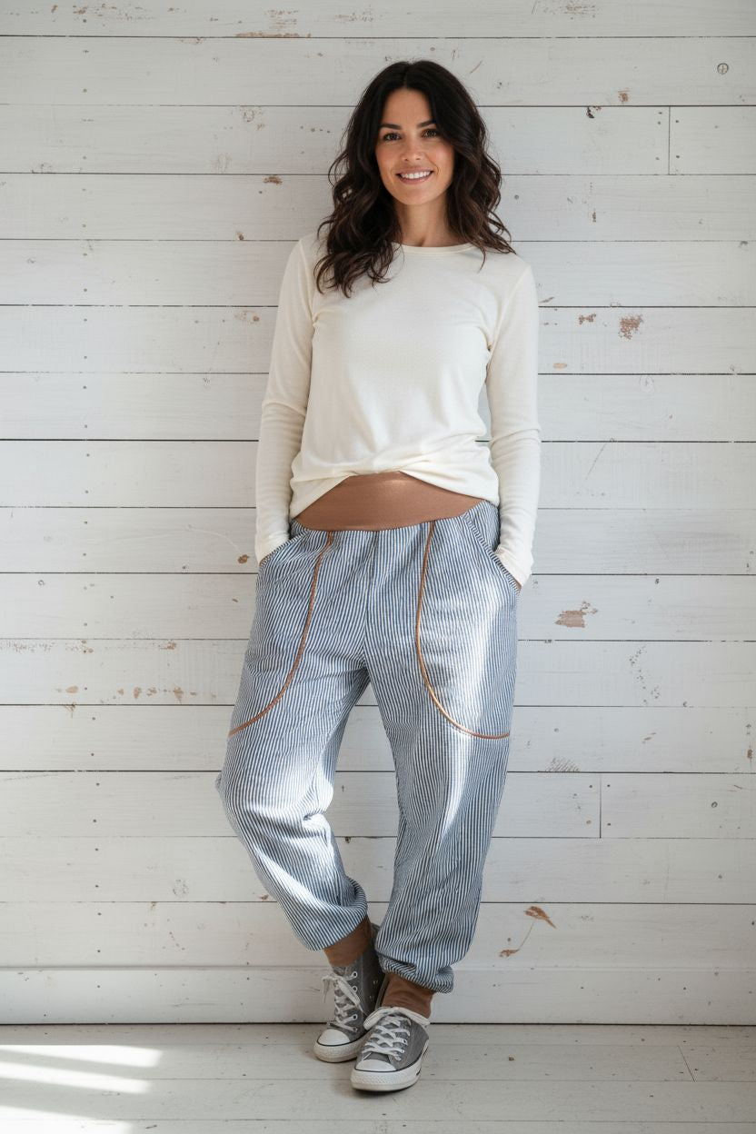 schniesel.Jeans Streifen Blau Rehbraun Baumwollpumphose