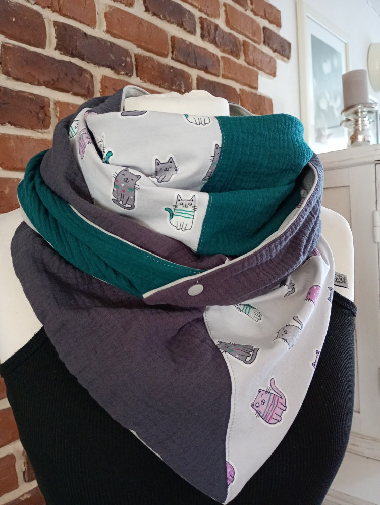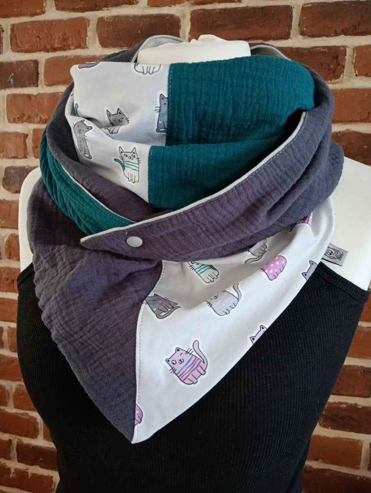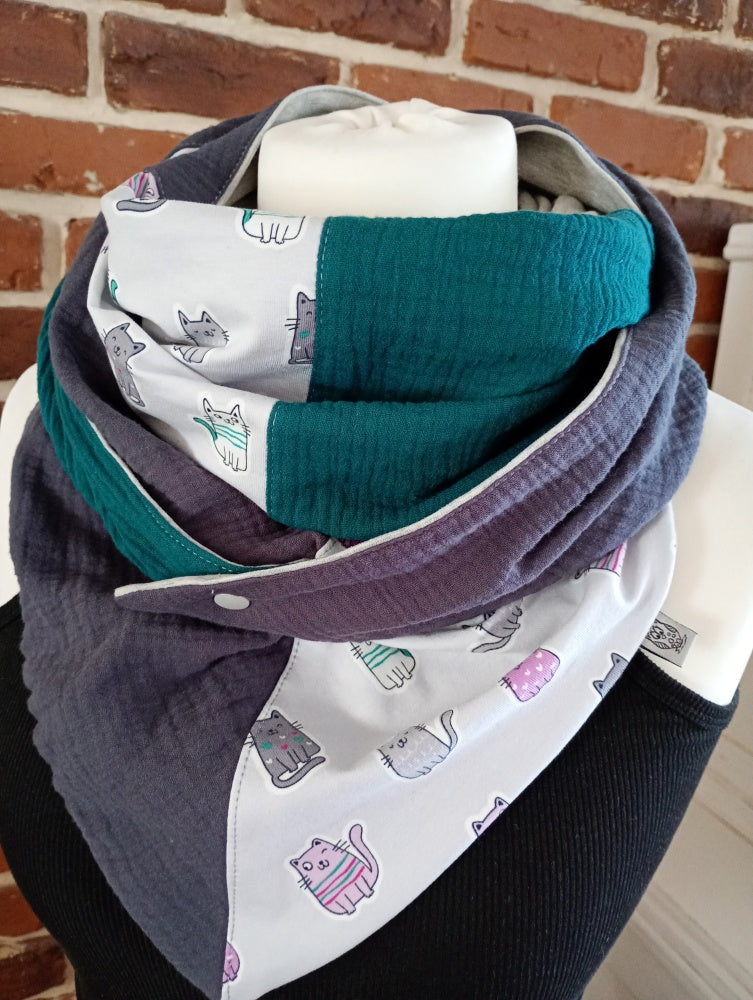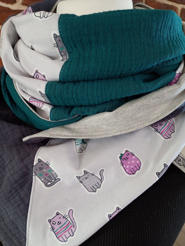 Dreiecktuch aus Musselin & Jersey mit niedlichen Katzen.