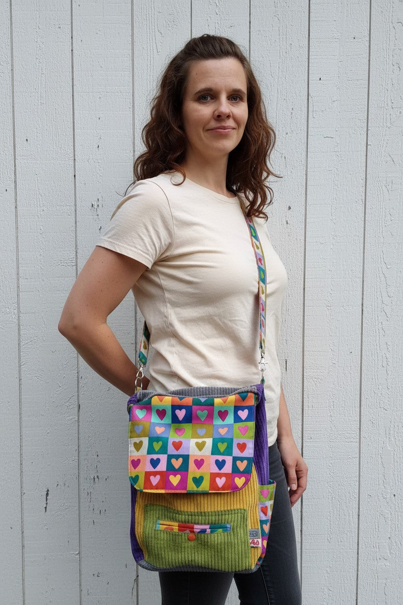 schniesel.Kunternunte Herzle Breitcord Handtasche